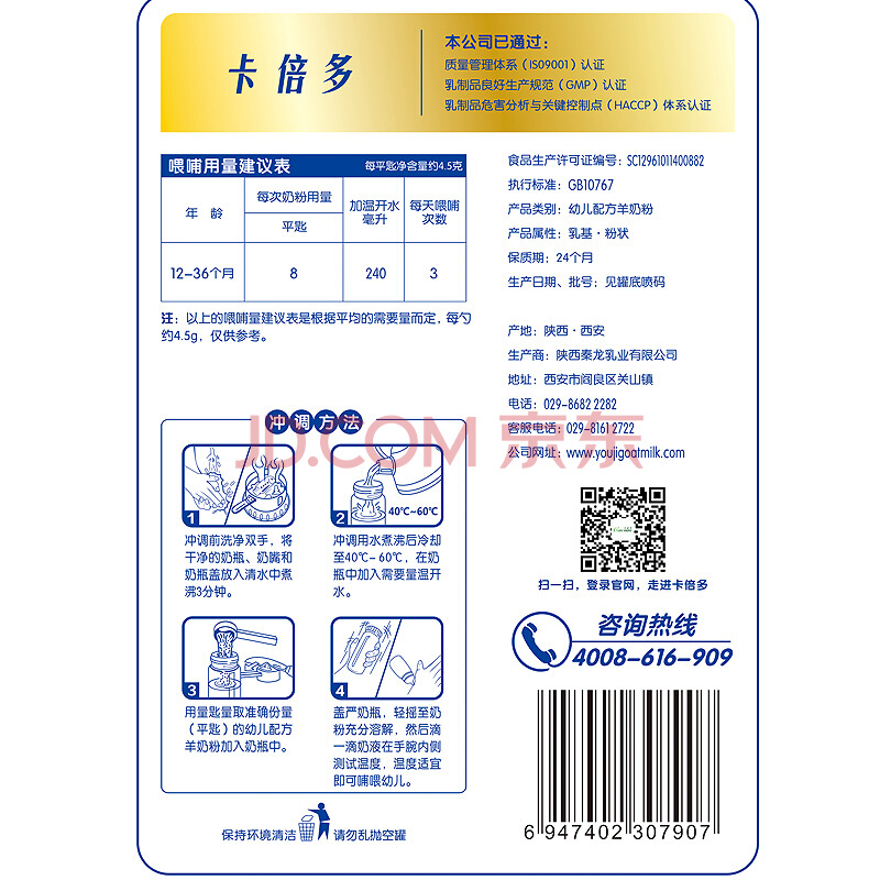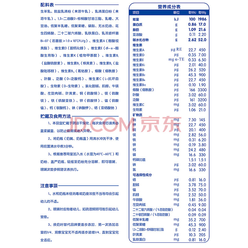 卡倍多幼兒配方羊奶粉(12-36月齡 3段)800克