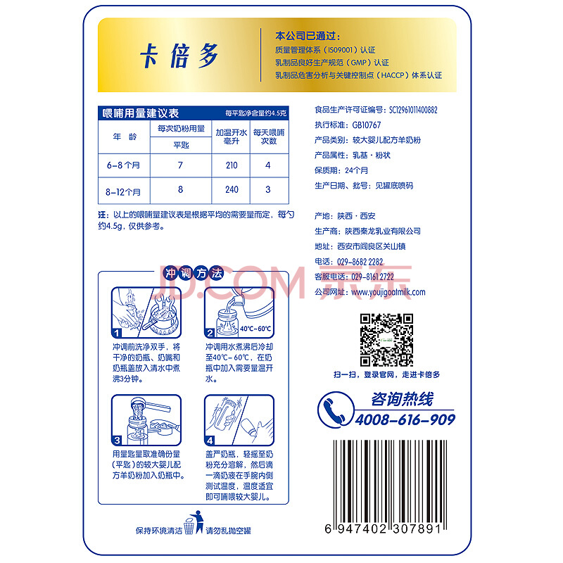 卡倍多較大嬰兒配方羊奶粉(6-12月齡 2段)800克